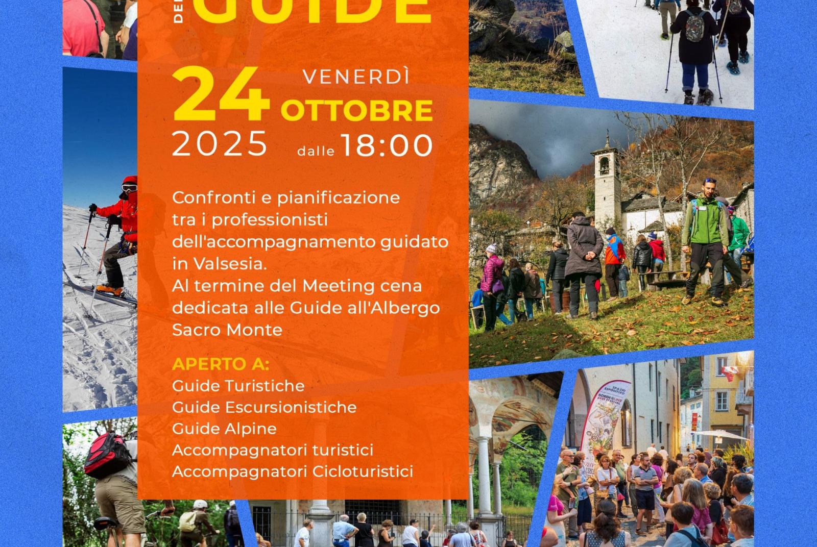 Venerdì 24 ottobre dalle 18.00 5° meeting delle guide presso il Sacro Monte di Varallo. L'incontro è aperto a guide turistiche, guide escursionistiche, guide alpine, accompagnatori turistici e accompagnatori cicloturistici.