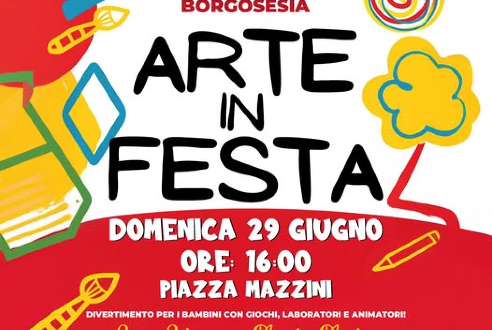 Domenica 29 giugno dalle ore 16:00 in Piazza Mazzini a Borgosesia ARTE IN FESTA – Domenica creativa per i più piccoli! Un pomeriggio all’insegna della fantasia e del divertimento con giochi, laboratori e animatori per far scatenare la creatività dei bambini! Un’occasione imperdibile per far vivere ai più piccoli una giornata all’aria aperta, tra risate, colori e tanta arte!