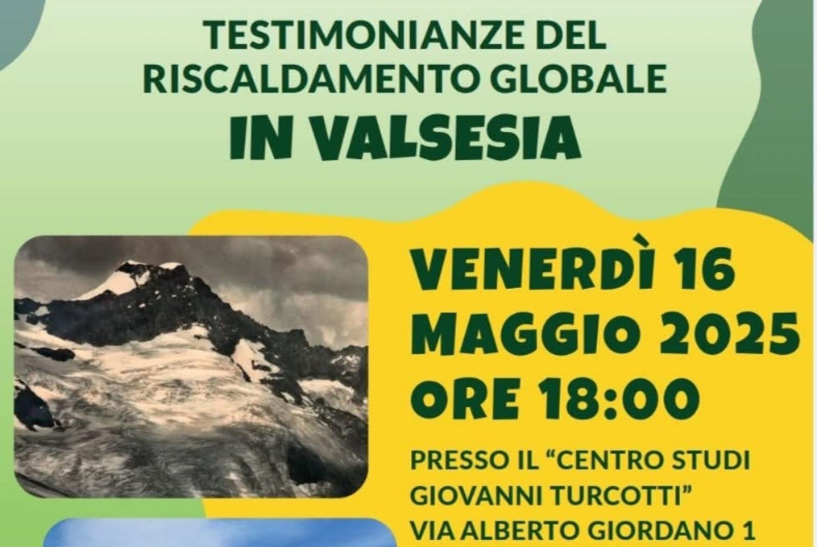 Venerdì 16 maggio 2025 alle ore 18:00 presso il Centro Studi Giovanni Turcotti in Via Alberto Giordano 1 a Borgosesia sarà organizzato un incontro per approfondire gli effetti concreti del cambiamento climatico nel nostro territorio, con l’intervento di Tito Princisvalle, rilevatore del Comitato Glaciologico Italiano. Sarà un’occasione per riflettere, informarsi e comprendere meglio ciò che sta accadendo intorno a noi.