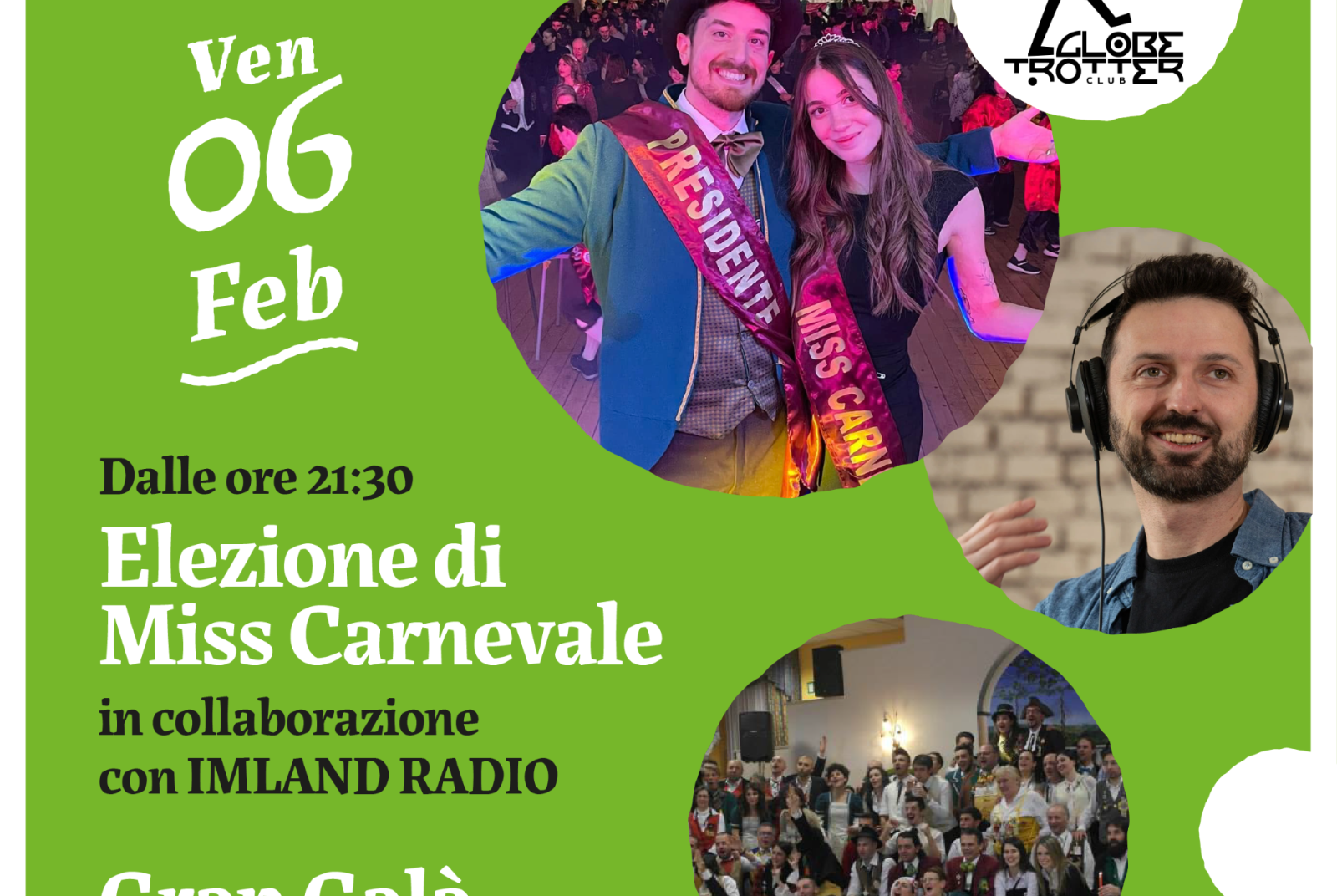 Venerdì 6 febbraio dalle ore 21.30 Elezione di Miss Carnevale in collaborazione con Imland radio e a seguire Gran Galà delle Maschere