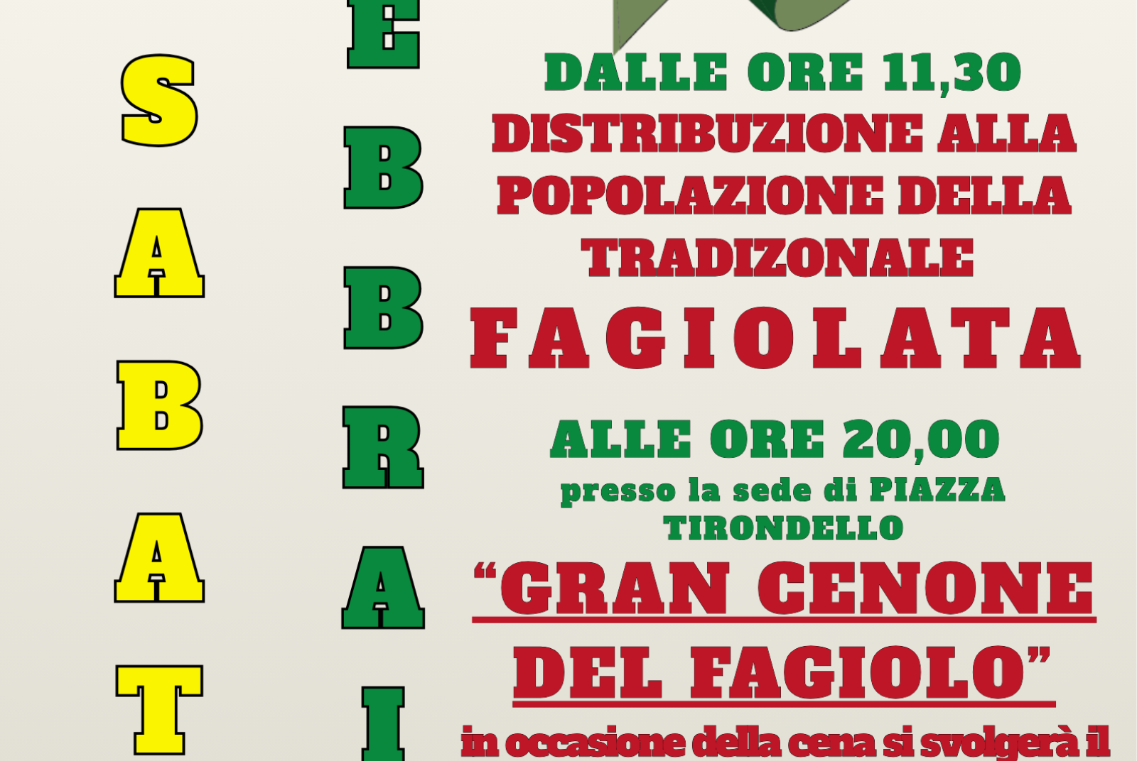 Ore 20 Gran cenone del fagiolo. Richiesta prenotazione