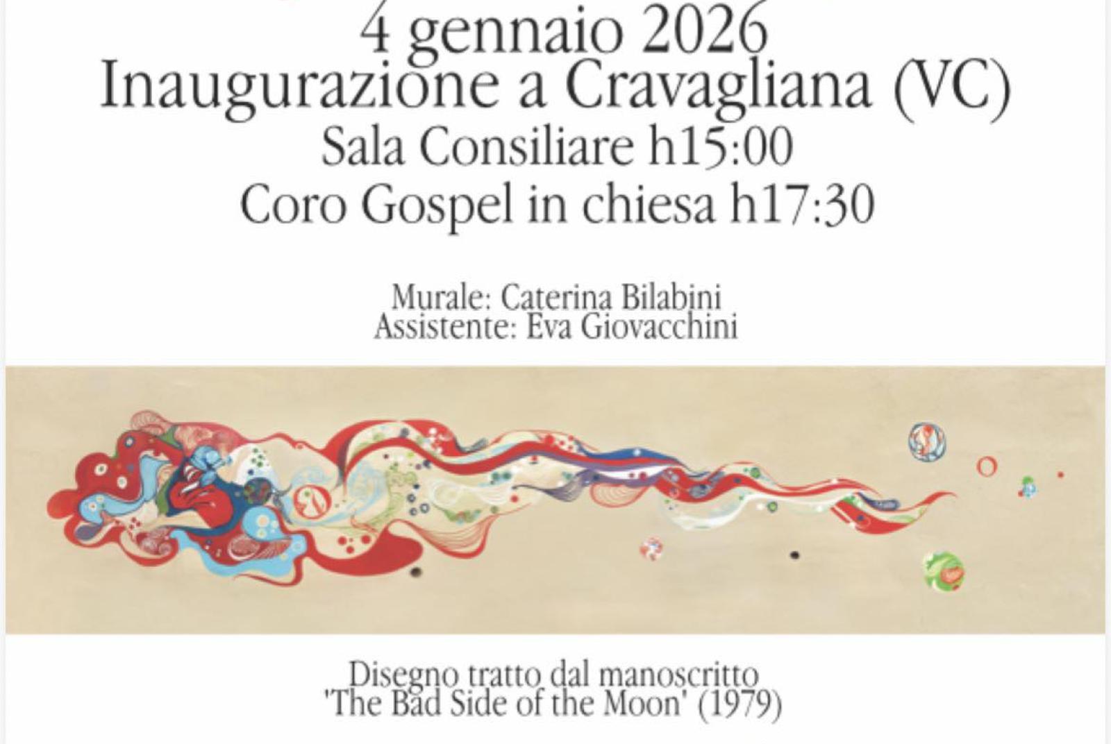 Domenica 4 gennaio 2026 giornata ricca di eventi a Cravagliana: alle ore 15 inaugurazione del murale nei pressi del Palazzo Comunale e alle ore 17:30 concerto del Biella Gospel Choir in Chiesa Parrocchiale