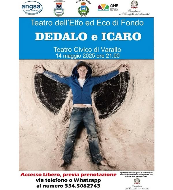 L’Unione Montana dei Comuni della Valsesia presenta “Dedalo e Icaro” il 14 Maggio alle ore 21:00 presso il Teatro Civico, uno spettacolo teatrale della Compagnia Eco di Fondo di sensibilizzazione sull’importante tematica dello spettro dell’autismo.