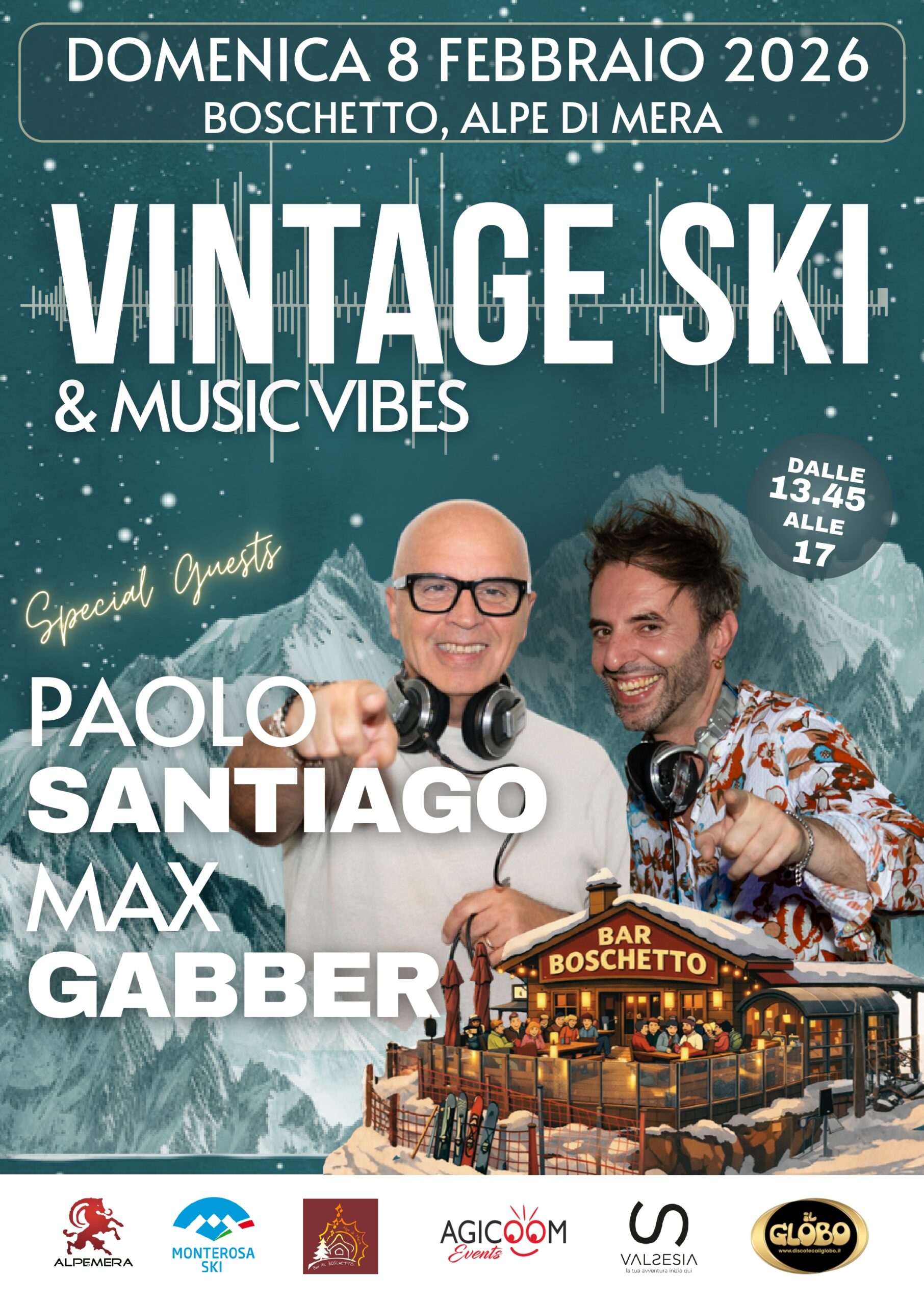Domenica 8 febbraio al boschetto all'Alpe di Mera Vintage ski day & Music vibesdalle 13.45 alle 17.00