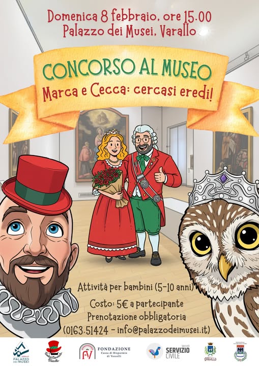 π.π.π. πππππ ππ πππππ π πππππππππππ πππππππ! Palazzo dei Musei ha deciso di eleggere le maschere del Carnevale di Varallo cercando i candidati ideali nelle proprie collezioni. Chi saranno i fortunati a salire sul trono di Marcantonio e Cecca?A scegliere le due maschere saranno i bambini! Prenotazione obbligatoria