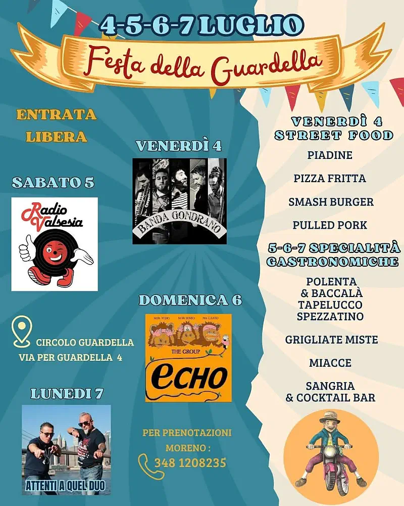 Dal 5 al 7 luglio presso il Circolo Guardella di Borgosesia, è arrivata l’estate e come sempre porta con sè un lungo week end di Musica, specialità gastronomiche e street food.