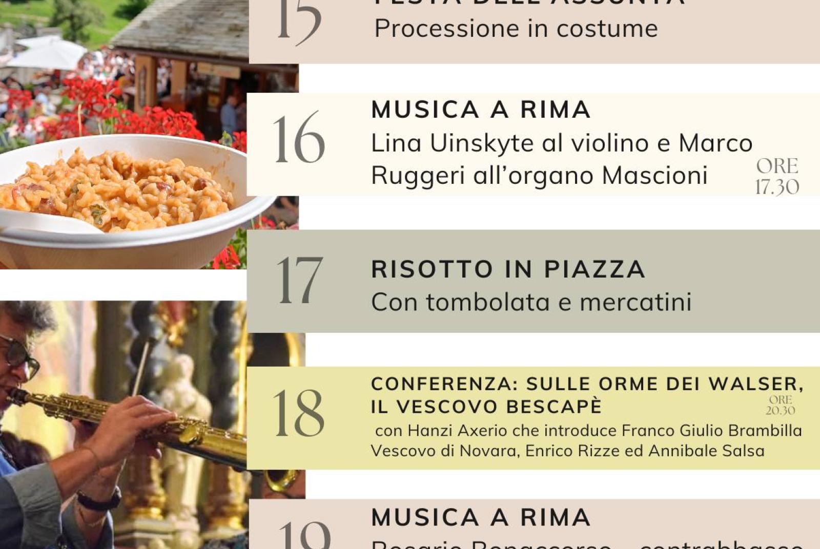 Venerdì 15 agosto a Rima ci sarà la festa dell'Assunta, una processione con i costumi tradizionali e incanto delle offerte