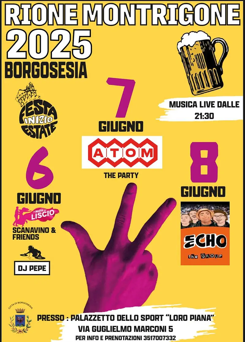 Dal 6 all'8 di giugno si terrà la festa di inizio estate del Rione Montrigone di Borgosesia al Palazzetto dello sport Loro Piana.
