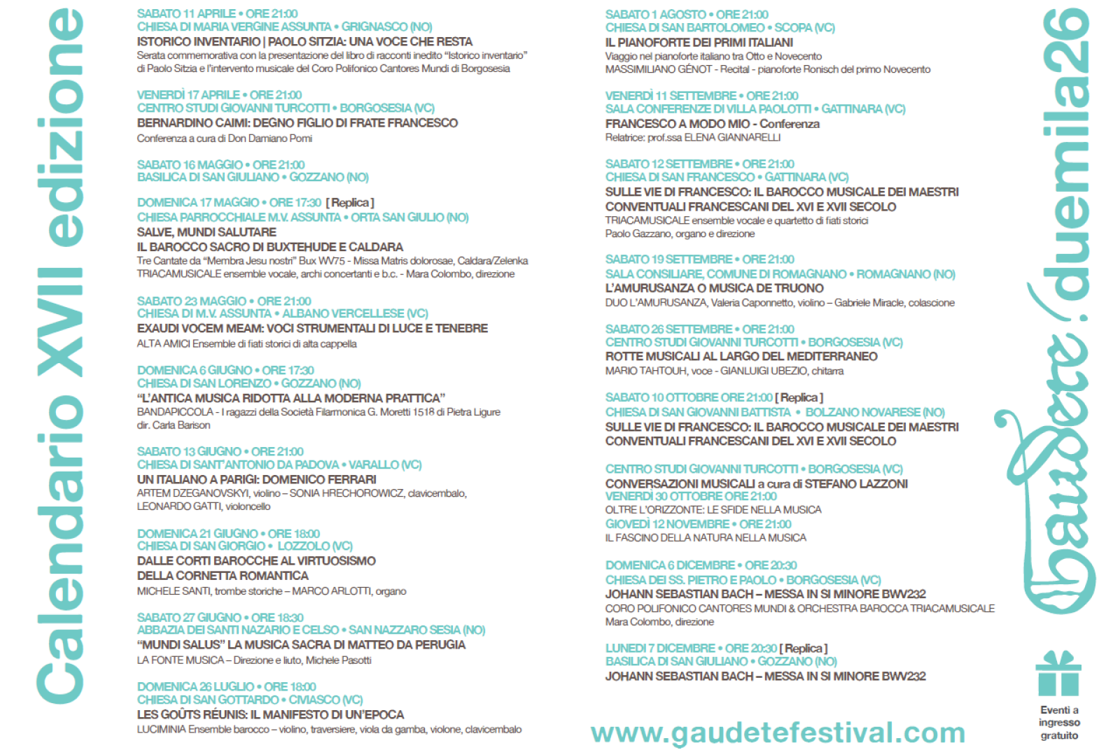 Info: Associazione Triacamusicale, 348.8209119, info@gaudetefestival.com