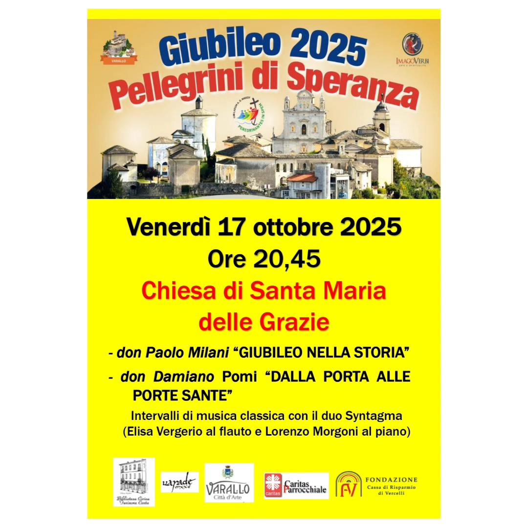 Nell'ambito del Giubileo della Speranza 2025 Imago Verbi e la @parrocchia1varallosesia, in collaborazione con la Caritas parrocchiale, la Fondazione CRV e il Comune di Varallo, hanno organizzato una serata venerdì 17 ottobre alle 20.45, presso Santa Maria delle Grazie, dedicata ad approfondire la storia del Giubileo e delle Porte Sante. Ingresso libero