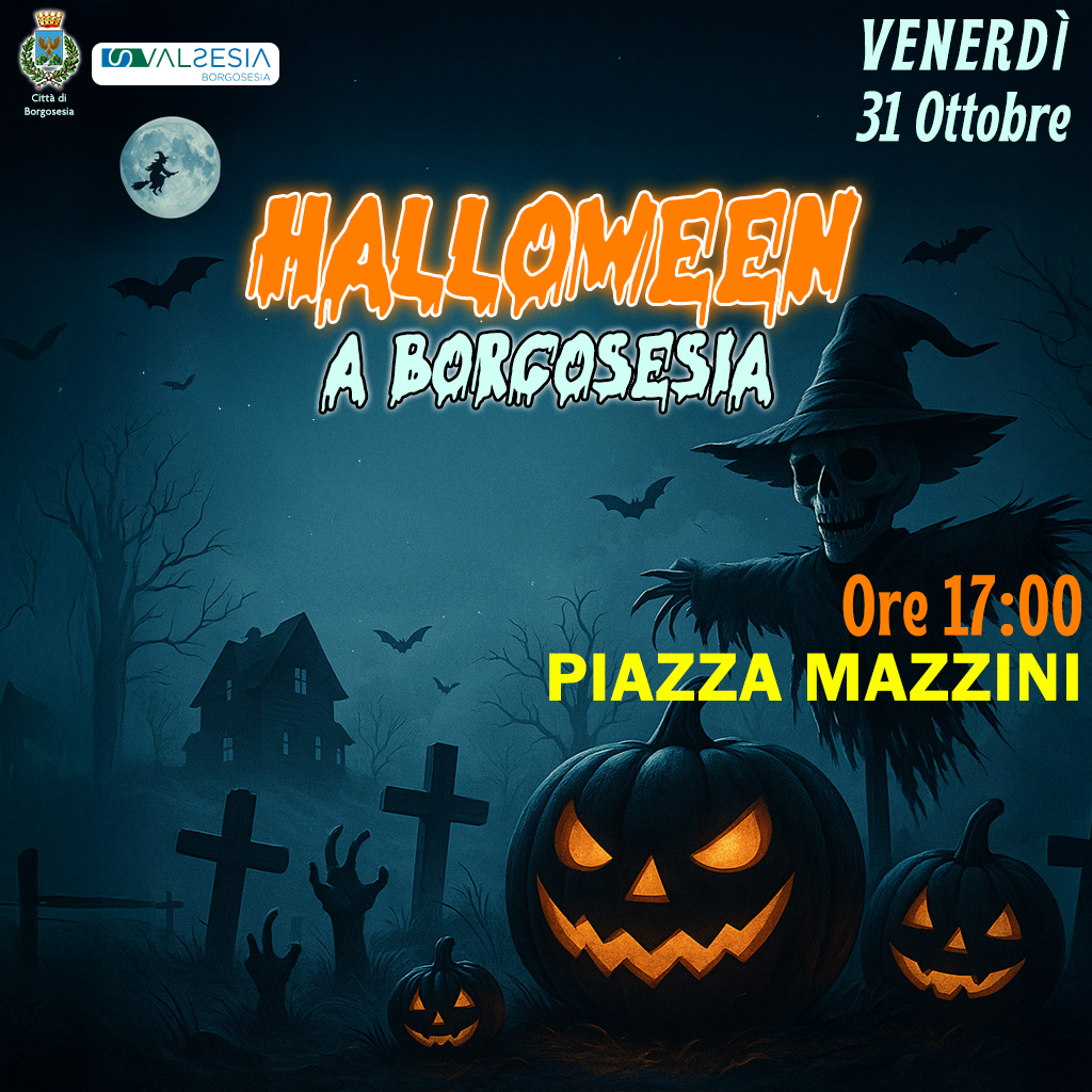 Venerdì 31 ottobre alle ore 17.00 in Piazza Mazzini a Borgosesia verrà organizzato un pomeriggio da brivido tra divertimento, mistero e tante sorprese nel cuore della città. Come da tradizione, i bambini potranno partecipare alla “Caccia al Tesoro Paurosa” : lungo il percorso incontreranno strani e paurosi personaggi pronti a consegnare un ricordino mostruoso! La mappa paurosa verrà distribuita in piazza per guidare i piccoli esploratori in questa avventura da… paura!