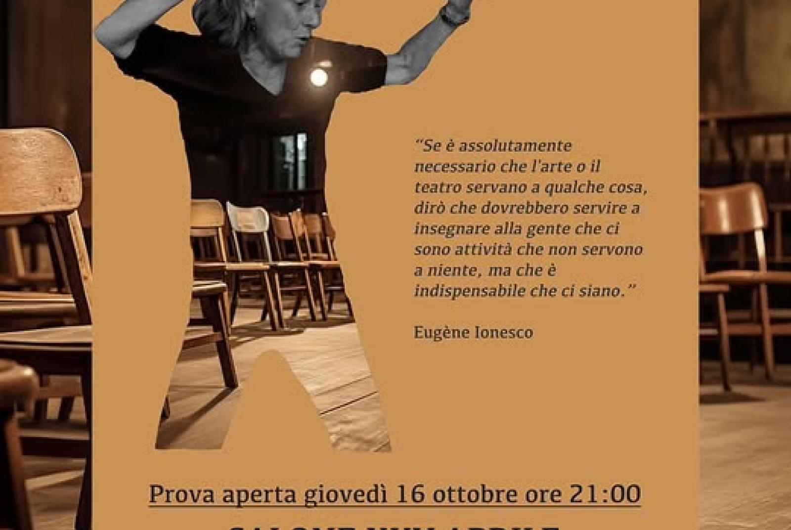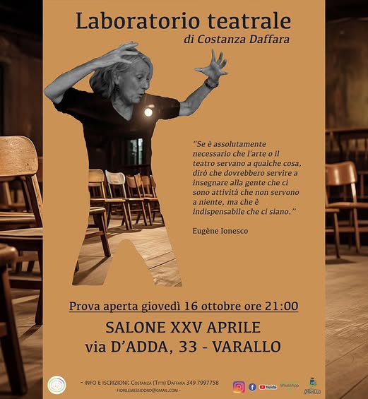 Giovedì 16 ottobre alle ore 21.00 prova aperta del laboratorio teatrale di Costanza Daffara presso il salone XXV Aprile in Via d'Adda 33.