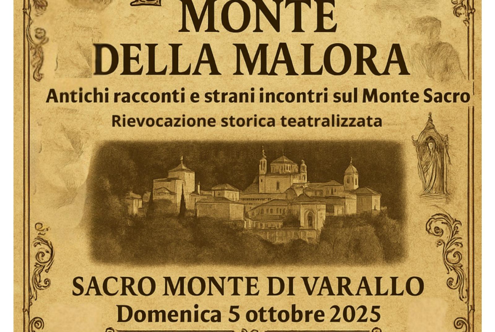 Domenica 5 ottobre è in programma a Varallo l'evento "L'inquieto monte della malora" che si svolgerà sul Sacro Monte, organizzato dall'Istituto alberghiero G. Pastore Varallo - Gattinara. Sarà una rievocazione storica teatralizzata riguardo antichi racconti e strani incontri sul Sacro Monte. L'ingresso è gratuito,il punto di accoglienza sarà in piazza G. Testori al Sacro Monte, all'arrivo i visitatori saranno suddivisi in gruppi e partiranno alle ore 10.00, ultima partenza ore 17.00.