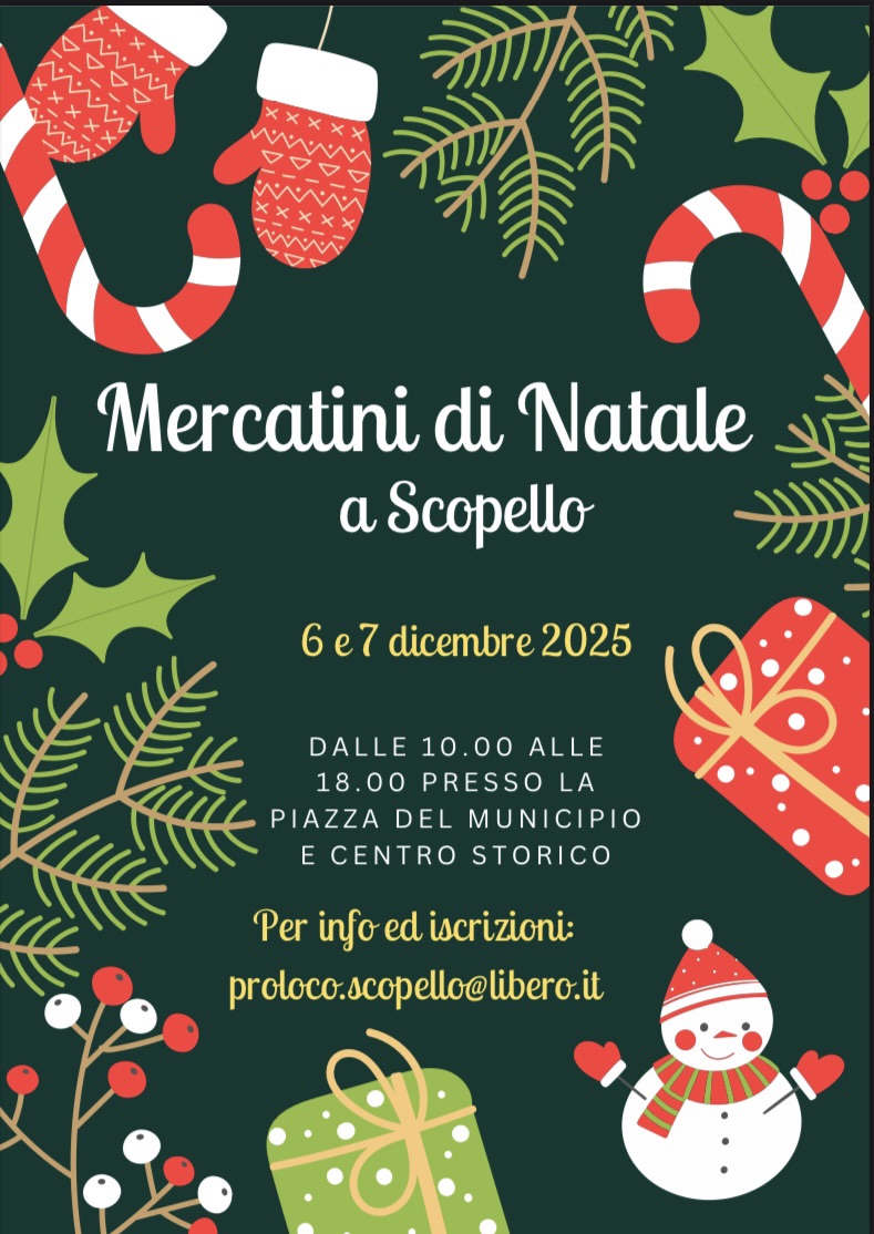 Sabato 6 e domenica 7 dicembre dalle 10 alle 18 in piazza Municipio e via della Chiesa a Scopello il mercatino di Natale con specialità enogastronomiche ed artigianato locale, inoltre laboratori per bambini e spettacoli.