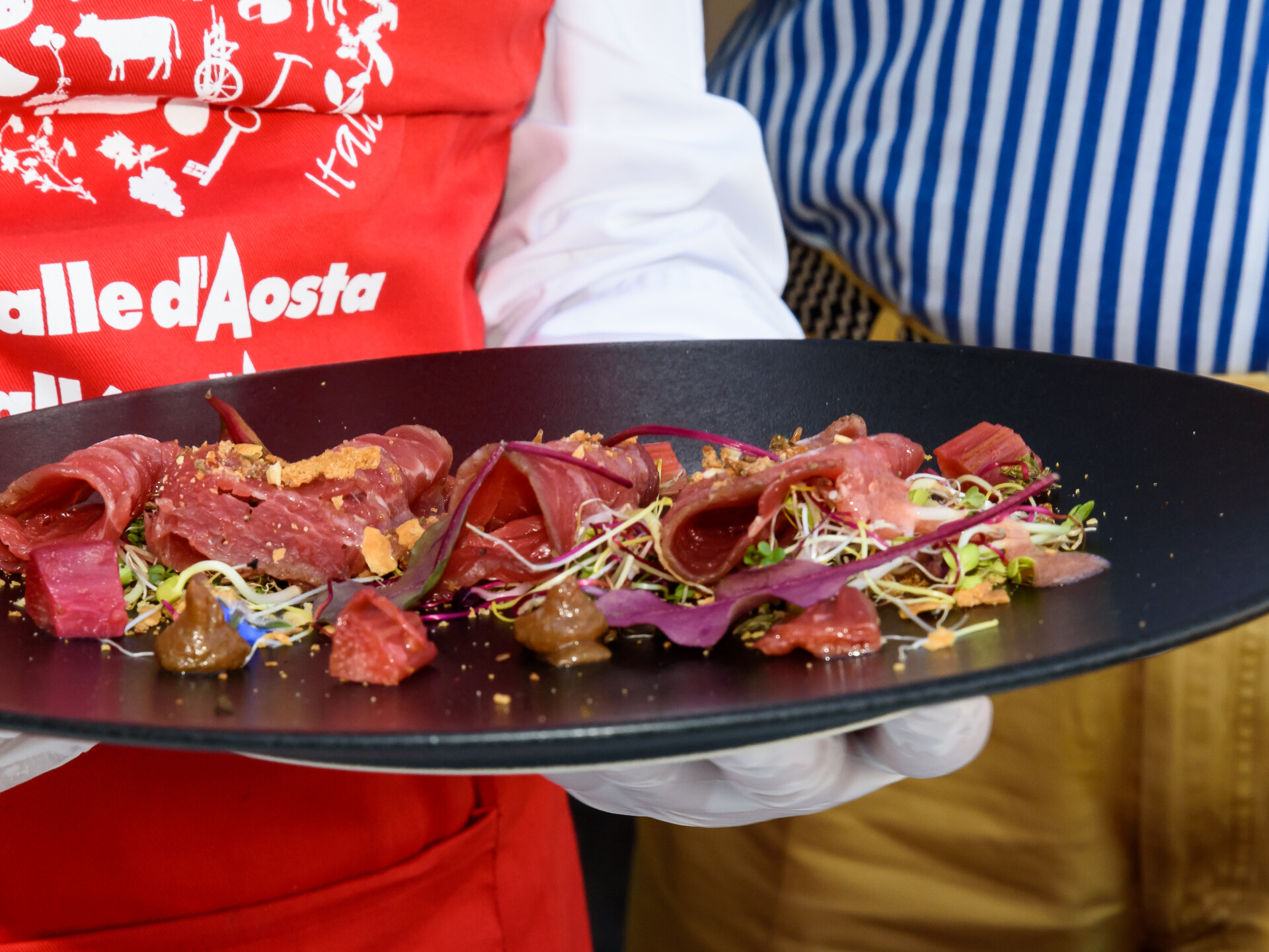 Durante lo show, lo Chef preparerà piatti con ingredienti del territorio, utilizzando in particolare i quattro prodotti DOP, che saranno poi offerti in degustazione al pubblico in abbinamento a vini valdostani.
