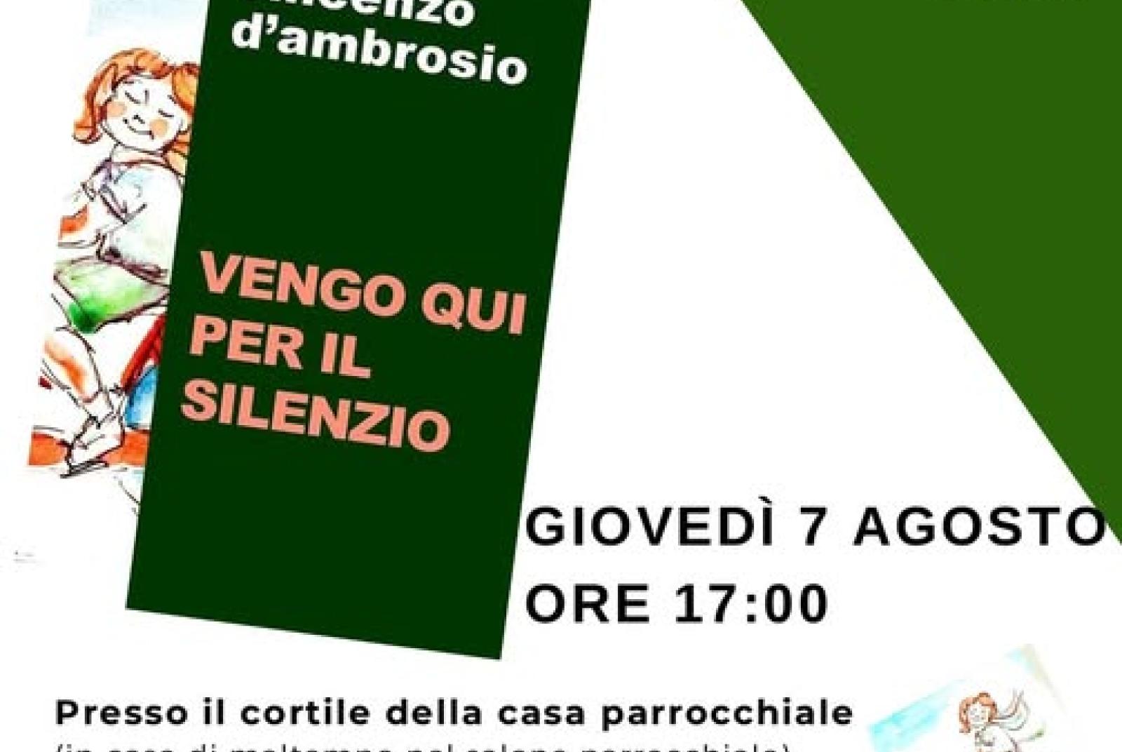 Giovedì 7 agosto alle ore 17.00 si terrà la presentazione del romanzo "Vengo qui per il silenzio" di Vincenzo d'Ambrosio. Un giallo molto particolare: una storia di "tormento". La presentazione si terrà presso il cortile della Chiesa Parrocchiale di Guardabosone.