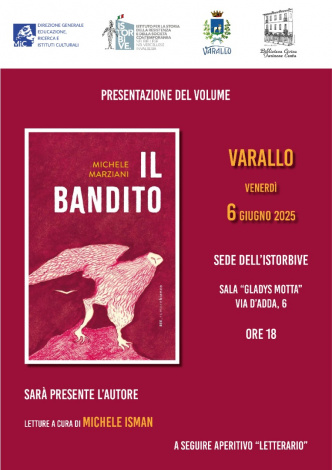 A Varallo, venerdì 6 giugno 2025, alle ore 18, nella sede dell’Istorbive, Sala "Gladys Motta", sarà presentato il volume di Michele Marziani Il bandito (Bee-Bottega Errante Edizioni, 2025), alla presenza dell’autore e con letture a cura di Michele Isman. A seguire aperitivo “letterario”.