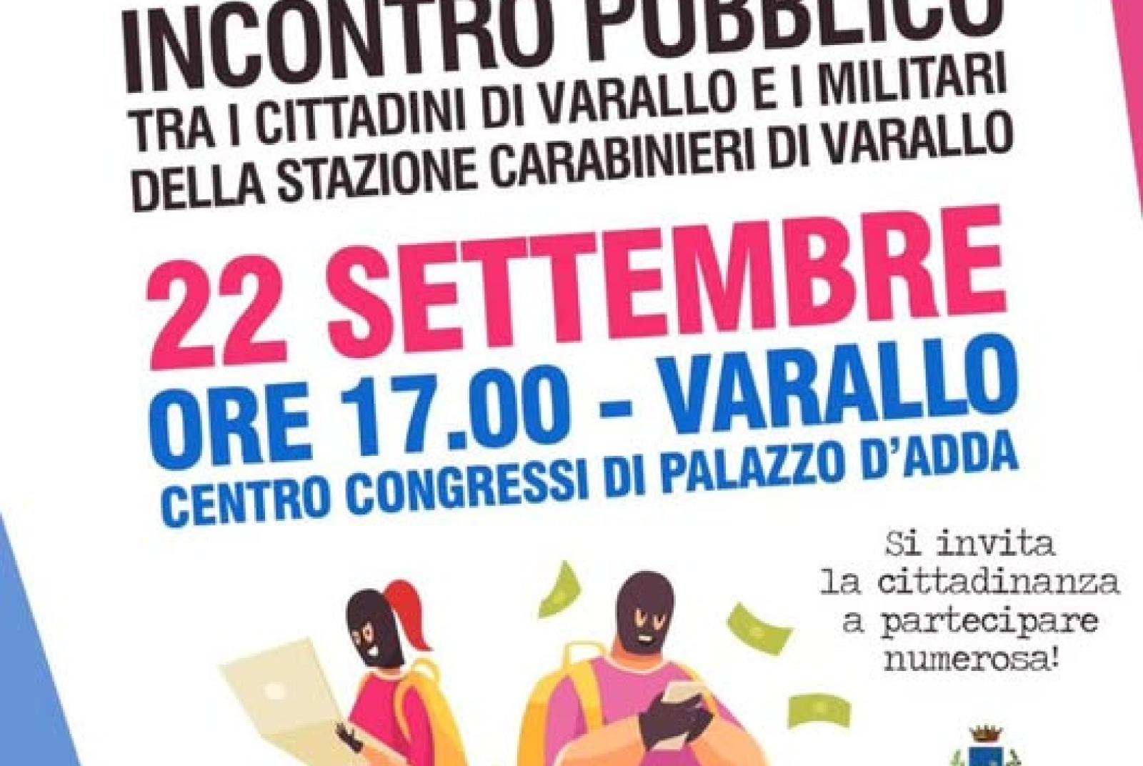 Lunedì 22 settembre alle ore 17.00 la cittadinanza è invitata a partecipare ad un importante incontro pubblico organizzato dai Carabinieri di Varallo, dedicato alla prevenzione e al contrasto delle truffe, specialmente verso gli anziani, presso il centro Congressi di Palazzo D'Adda (ingresso dal Parco dell'Istituto D'Adda - via M. T. Rossi 4)