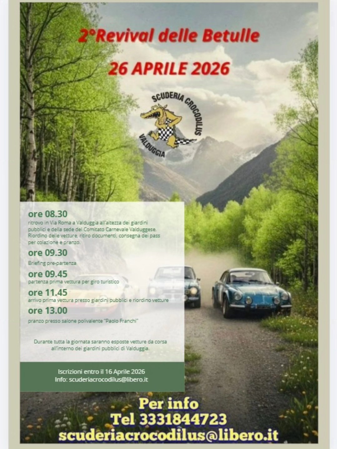Domenica 26 aprile a Valduggia, si terrà il 2° Revival delle Betulle, un autoraduno storico che ripercorre le strade del leggendario "Rally 333 Minuti". Tale evento celebra la passione per i motori d'epoca con briefing e percorsi panoramici. Le iscrizioni sono aperte fino al 16 aprile per questo tuffo nel passato rallystico.