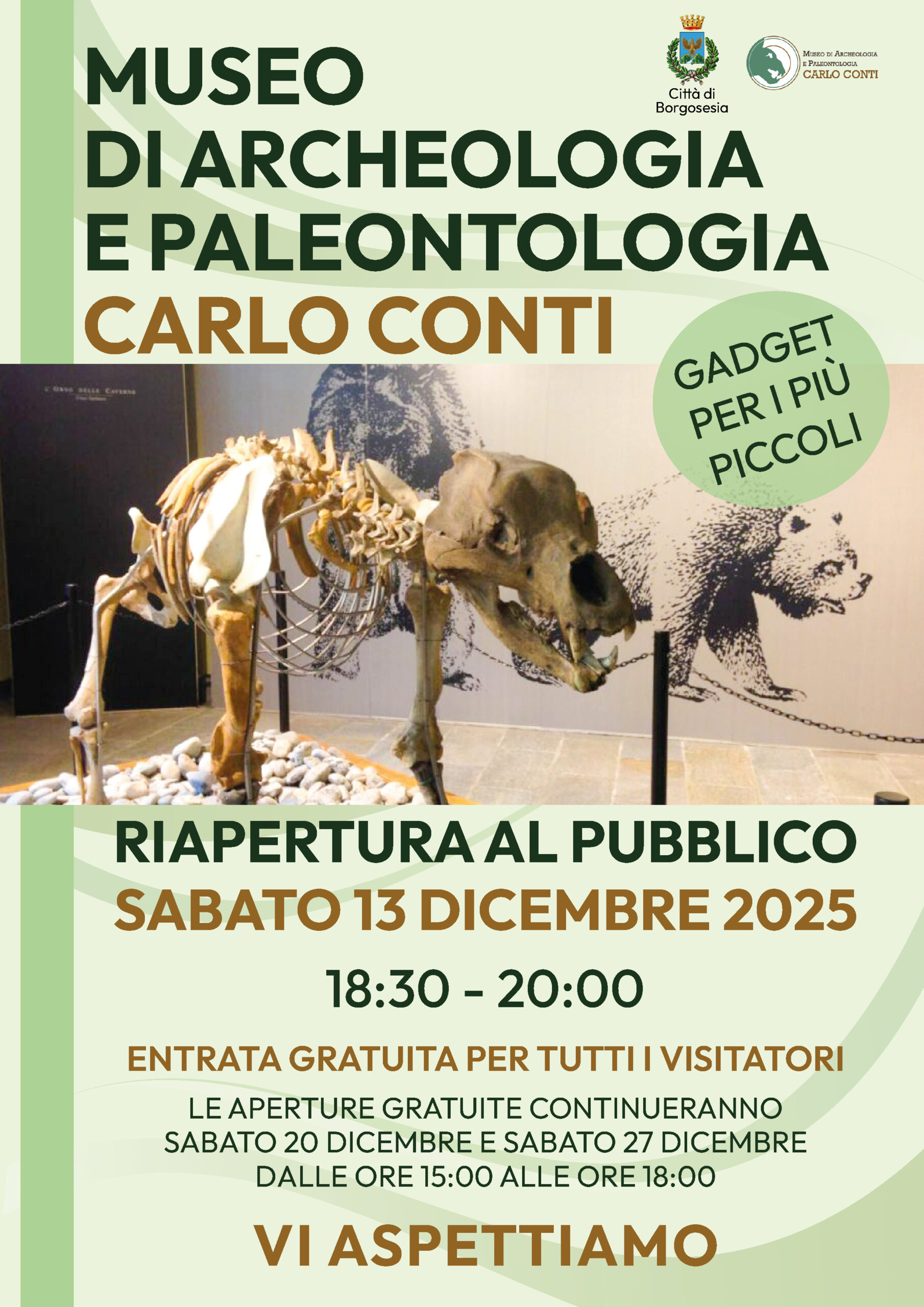 Riapre il museo di archeologia e paleontologia Carlo Conti di Borgosesia! Entrata gratuita per tutti i visitatori: