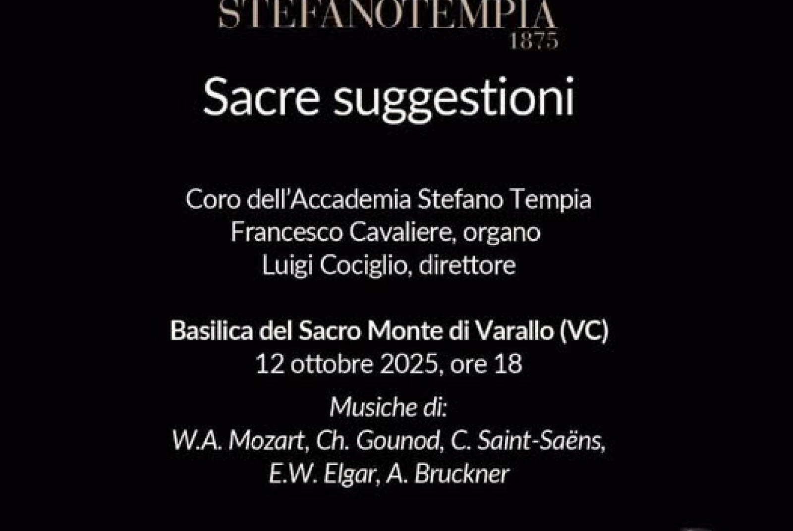 Domenica 12 ottobre alle ore 18.00 presso la Basilica dell'Assunta al Sacro Monte di Varallo un uovo importante appuntamento, "Sacre suggestioni", con il quale si amplifica ancora la ricca e variegata proposta musicale, spirituale e artistico-culturale del Sacro Monte di Varallo, sempre in stretta sinergia con l'Ente di gestione dei @sacrimontidelpiemonte e il Rettore della Basilica dell'Assunta. Con il coro della @accademiacoralestefanotempia con Francesco Cavaliere all'organo, diretto da Luigi Cociglio e le musiche di Mozart, Gounod, Saint-Saens, Elgar e Bruckner.