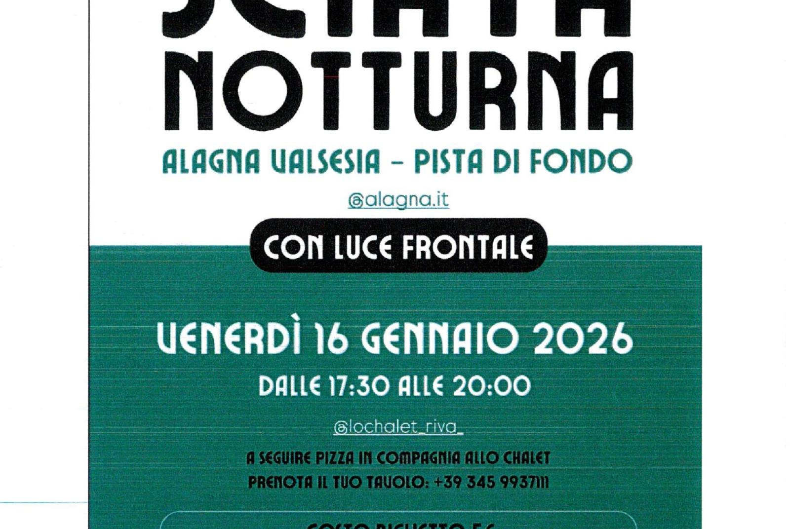 Venerdì 16 gennaio dalle 17.30 alle 20.00 sciata notturna presso la pista di fondo di Riva Valdobbia. Portare la luce frontale. A seguire pizza in compagnia allo chalet. Per prenotare il tavolo 3459937111.