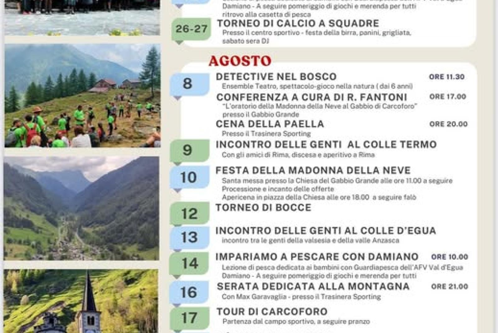 Il 16 agosto serata dedicata alla montgana alle ore 21.00, con Max Garavaglia presso il Trasinera sporting