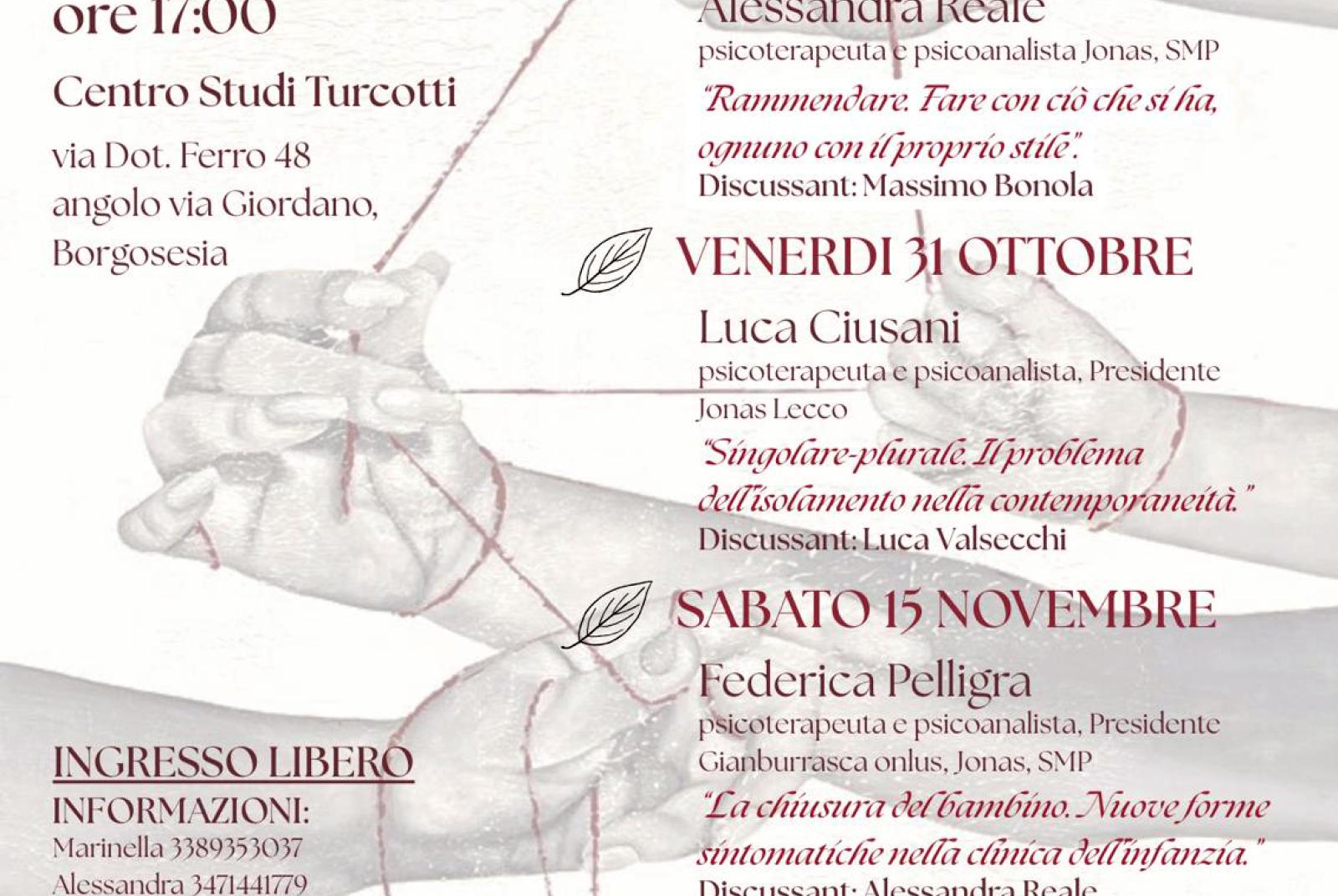 Venerdì 31 ottobre secondo evento del ciclo "Seminare parole - Lessico minimo del pensare" dal tema "Singolare-plurale. Il problema dell'isolamento nella contemporaneità con lo psicoterapeuta Luca Ciusani e Luca Valsecchi come moderatore.