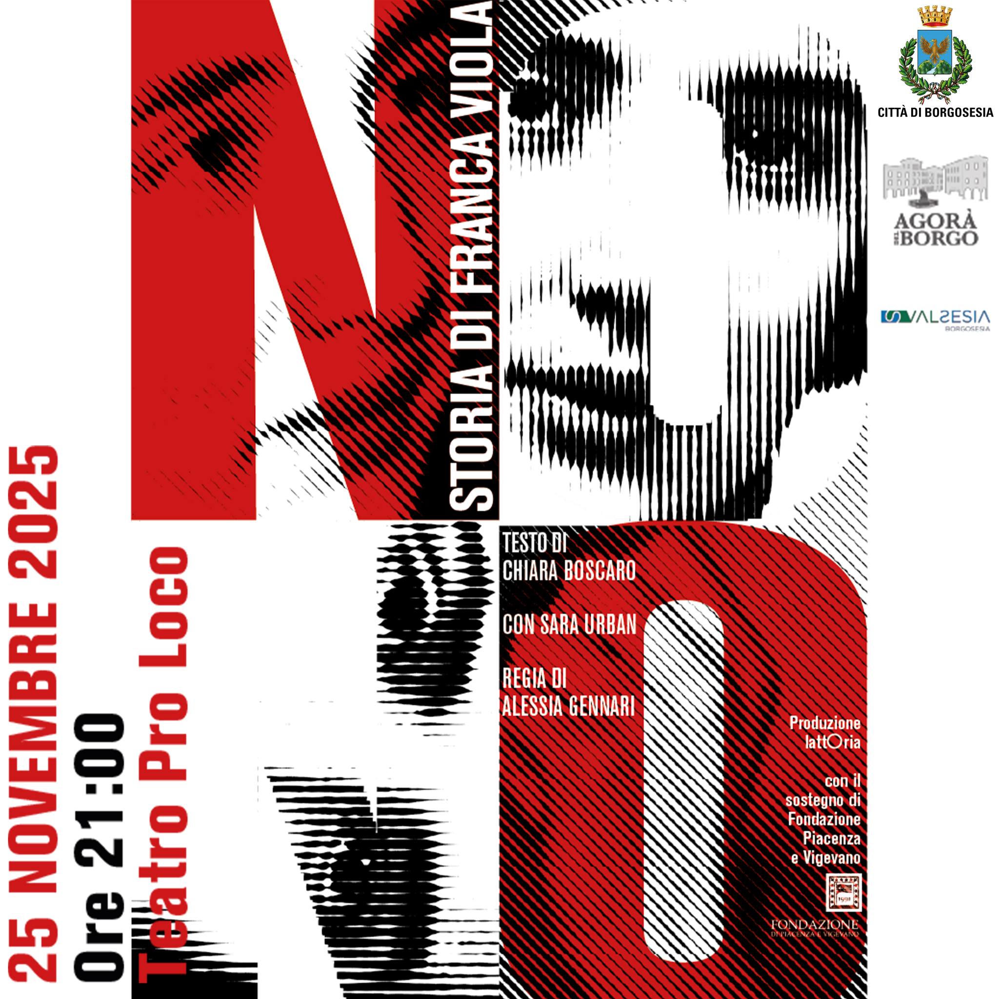Il 25 novembre alle ore 21.00 a Borgosesia presso il teatro Pro Loco verrà messo in scena lo spettacolo “Storia di Franca Viola”, ispirato al testo di Chiara Boscaro: un evento culturale aperto al pubblico per conoscere una pagina importante della storia italiana.