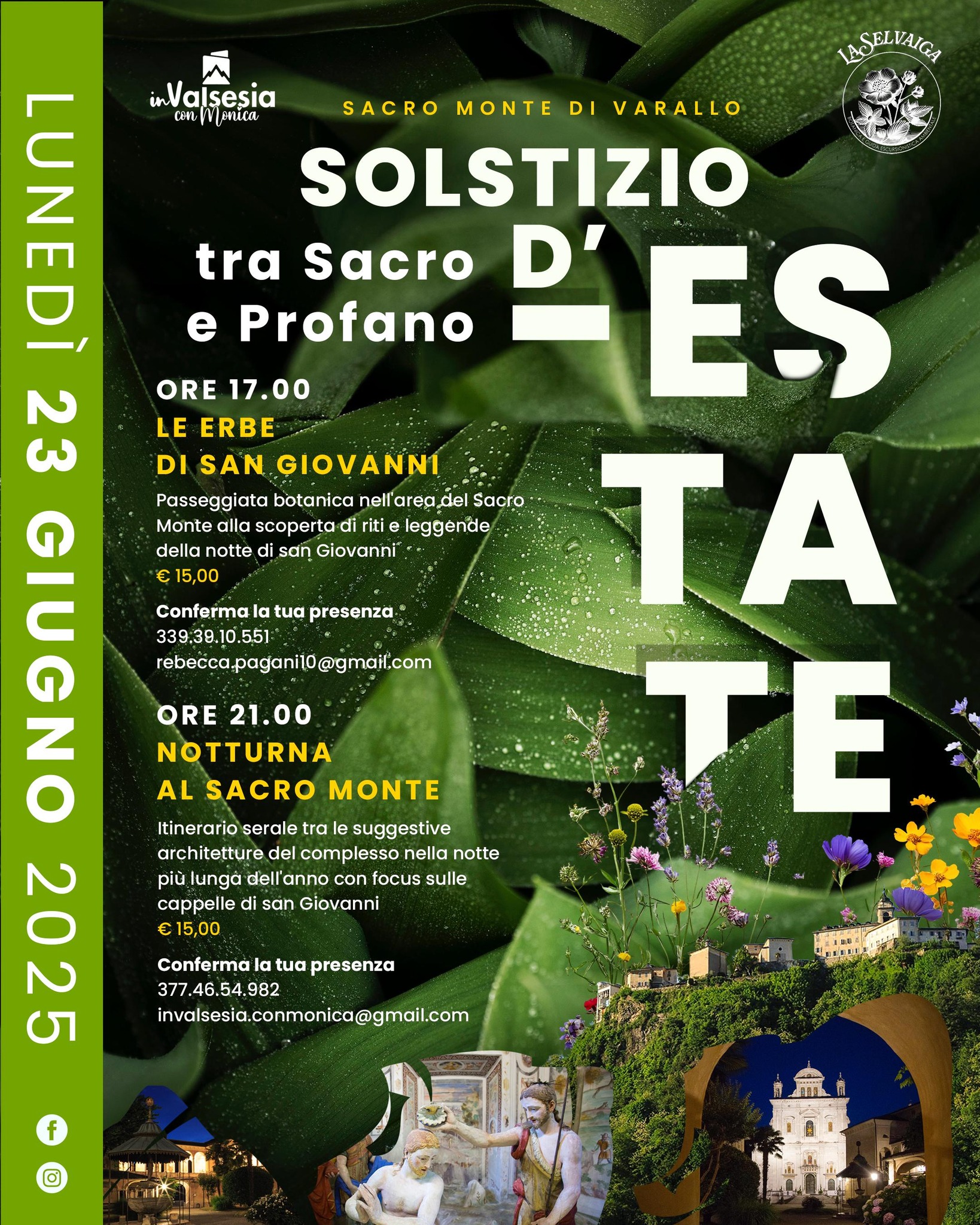 alle ore 17.00 La passeggiata botanica con Rebecca Pagani nell'area esterna al Sacro Monte e alle ore 21.00 l'esperienza di visita in notturna con Monica Ingletti tra le cappelle. E' un evento con posti limitati, per prenotazioni contattare il seguente numero: