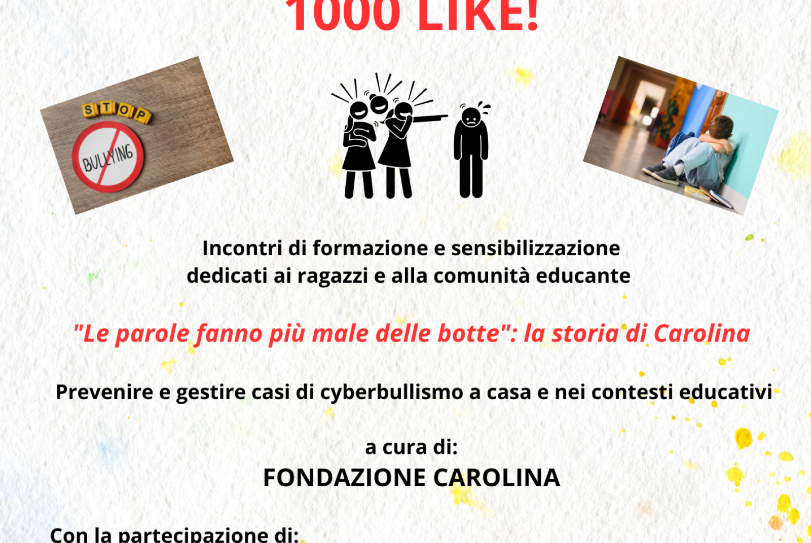 Incontri di formazione e sensibilizzazione dedicati ai ragazzi e alla comunità educante. Prevenire e gestire casi di cyberbullismo a casa e nei contesti educativi a cura di Fondazione Carolina. Presso Teatro Civico alle 17.30