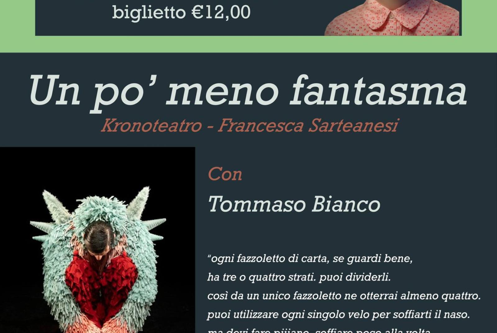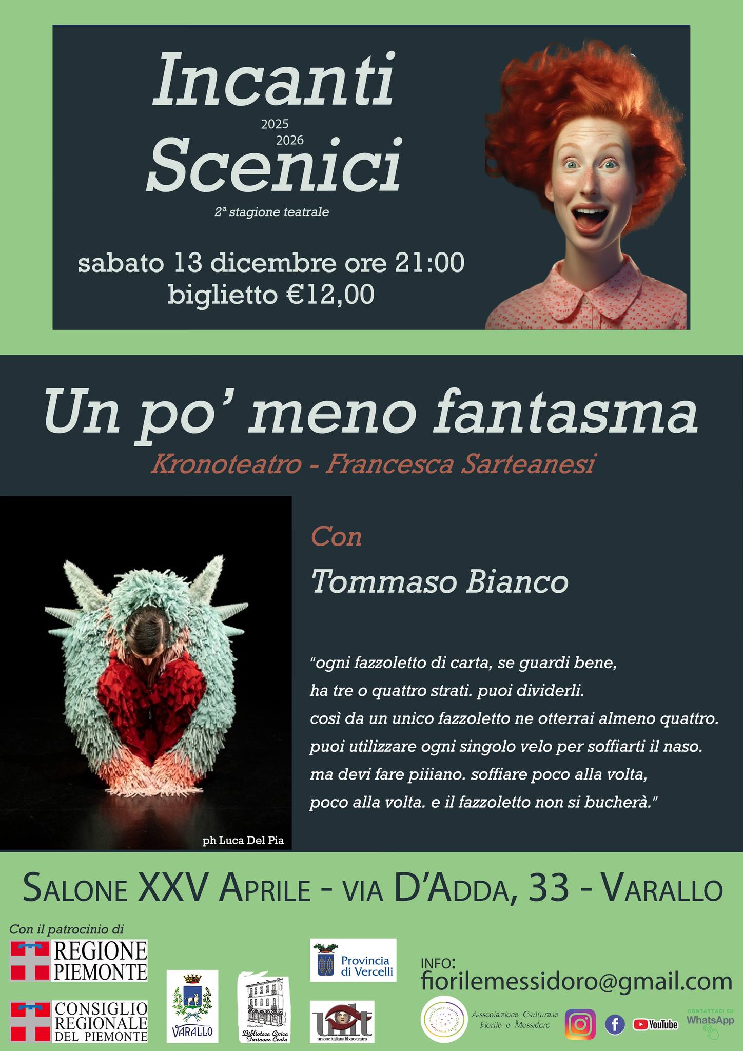 Inizia la stagione 2025/2026 di Incanti Scenici, sabato alle 21:00 si terrà lo spettacolo teatrale "Un po' meno fantasma", Kronoteatro-Sarteanesi.