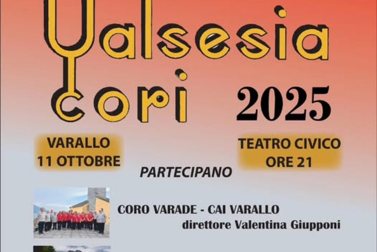 Il @corovarade, della sezione CAI di Varallo, organizza la XXXV^ edizione della Rassegna “Valsesia Cori” sabato 11 ottobre alle ore 21.00 presso il Teatro civico di Varallo. Come sempre aprirà la serata il Coro Varade, diretto da Valentina Giupponi, a cui seguiranno: