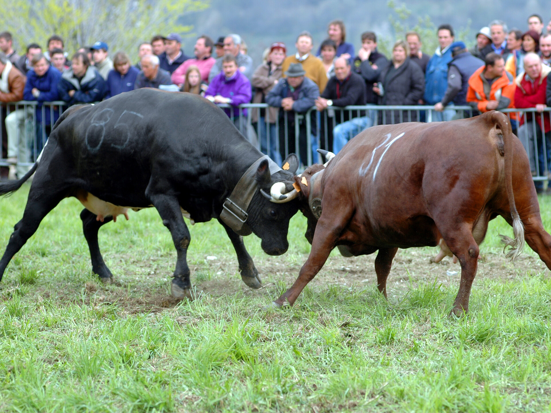De la tradition valdôtaine font partie aussi les “Batailles de chèvres” et les “Batailles de moudzons” catégorie inférieure de vaches.